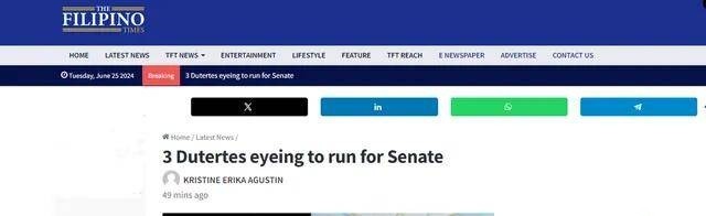 除了莎拉·杜特尔特之外,杜特尔特的儿子塞巴斯蒂安也开始在舞台上崭露头角,其瞄准2028年总统选举,积极筹备竞选活动,试图成为下一任总统候选人。可以说,杜特尔特家族的崛起并非偶然,而是经过精心策划和布局的,其世代交替计划也在逐渐展现,意图在舞台上打下更深远的家族根基,稳固家族在舞台上的地位。