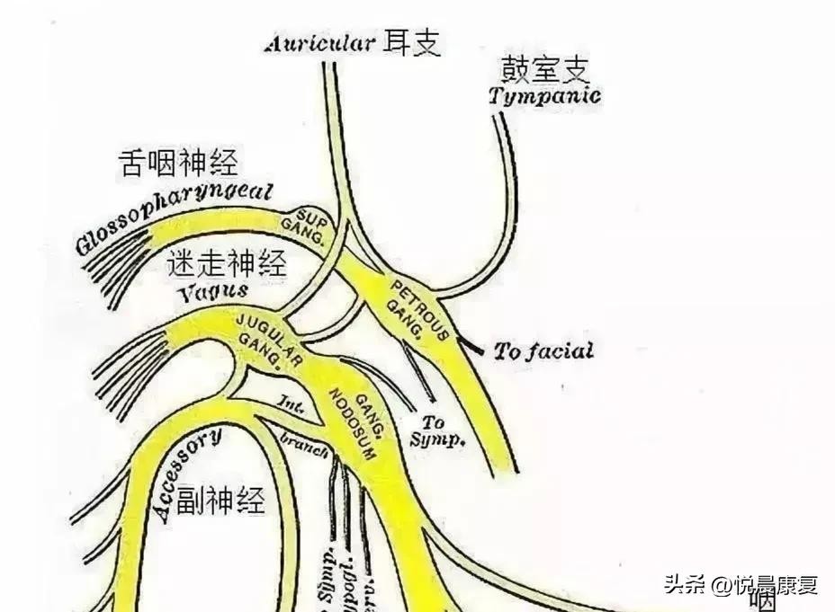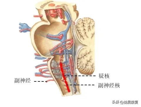 副神经(accessory nerve)是第11对脑神经,由颅根和脊髓根组成。颅根的纤维为特殊内脏运动纤维,起自疑核,自迷走神经根下方出脑后与脊髓根同行,经颈静脉孔出颅,加入迷走神经,支配咽喉肌。脊髓根的纤维为特殊内脏运动纤维,起自脊髓颈部的副神经脊髓核,由脊神经前后根之间出脊髓,在椎管内上行,经枕骨大孔入颅腔,与颅根汇合一起出颅腔。