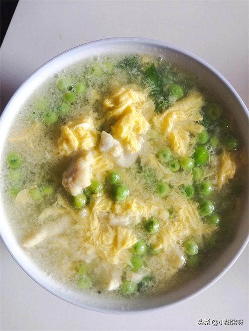 我这里最常吃的一种就是豌豆鸡蛋汤。