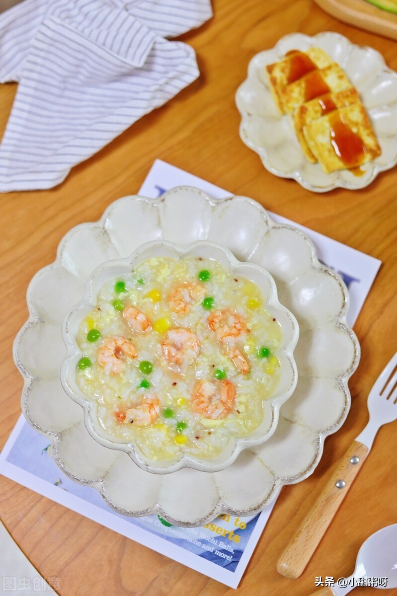 吃完了豌豆尖的火锅,地里的新鲜豌豆也已经生长出来了,摘一些鲜嫩的豌豆,配上大米(糯米),熬成浓稠的豌豆大(糯)米粥、豌豆虾仁粥,无论是当做早餐还是晚餐,都是好吃又有营养的!小火慢慢煮出大(糯)米的米香,超级粘稠,粥里加入虾仁、豌豆、玉米、胡萝卜和香菇等,营养也是超级的丰富,味道鲜美。