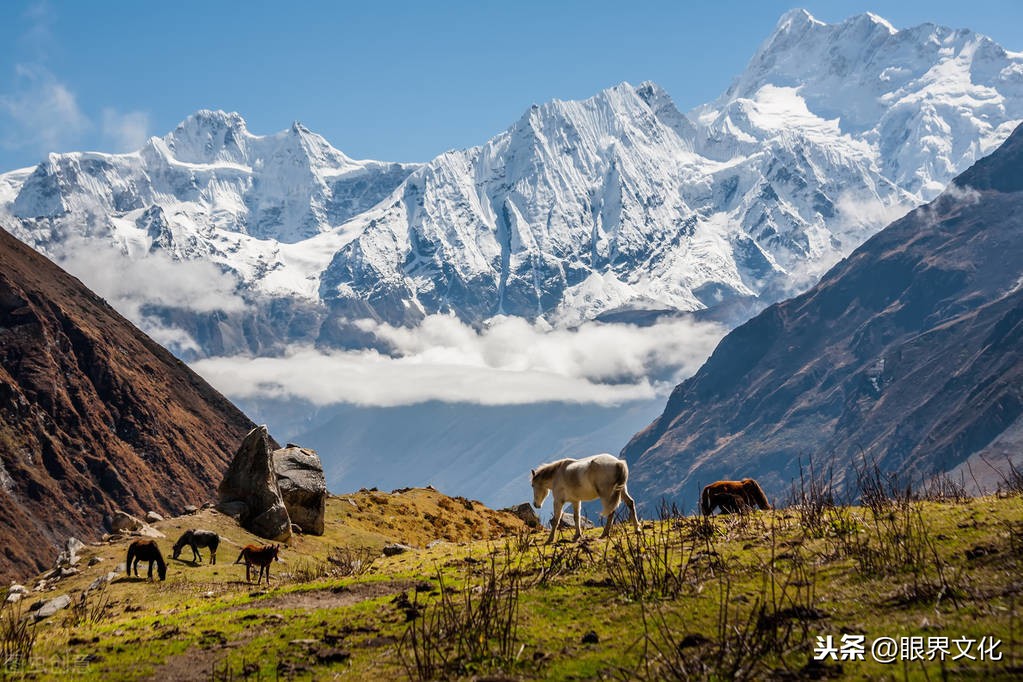 尼泊尔萨加玛塔国家公园南池镇雪山自然风光,尼泊尔EBC徒步