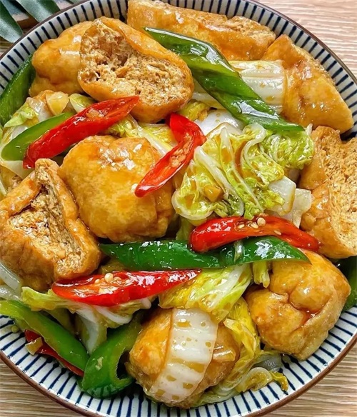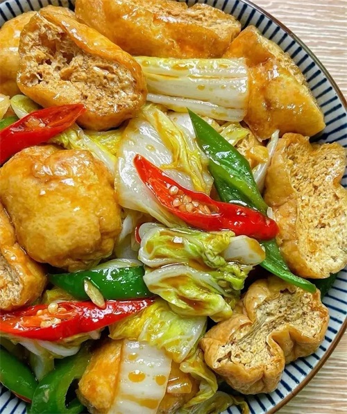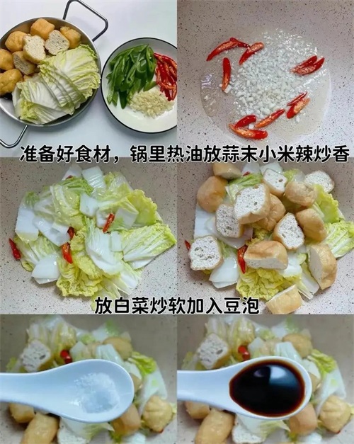 这是一道家常素菜,简单易做。将白菜切块,豆腐切成小块。热锅加水,将切好的白菜和豆腐放入锅中,加入适量盐和鸡精,炖至豆腐入味即可。