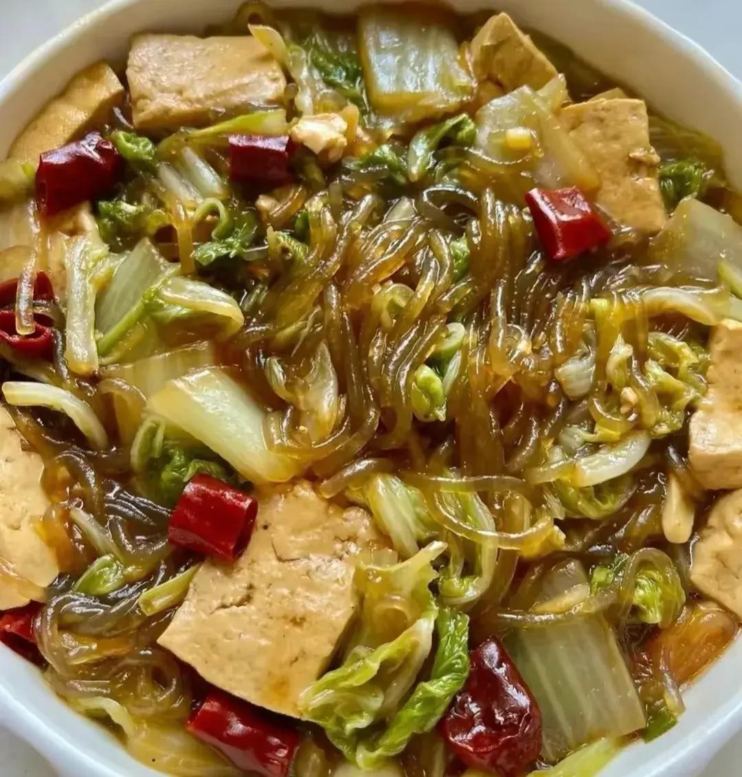 这是一道清爽可口的凉菜。将白菜切丝,粉丝煮熟备用。将切好的白菜丝和煮熟的粉丝放入大碗中,加入适量盐、醋、生抽和香油,拌匀即可。