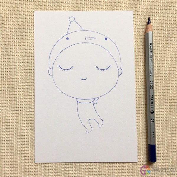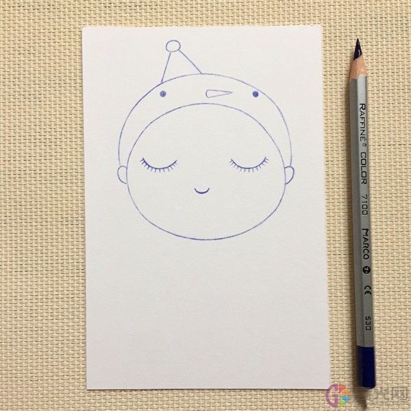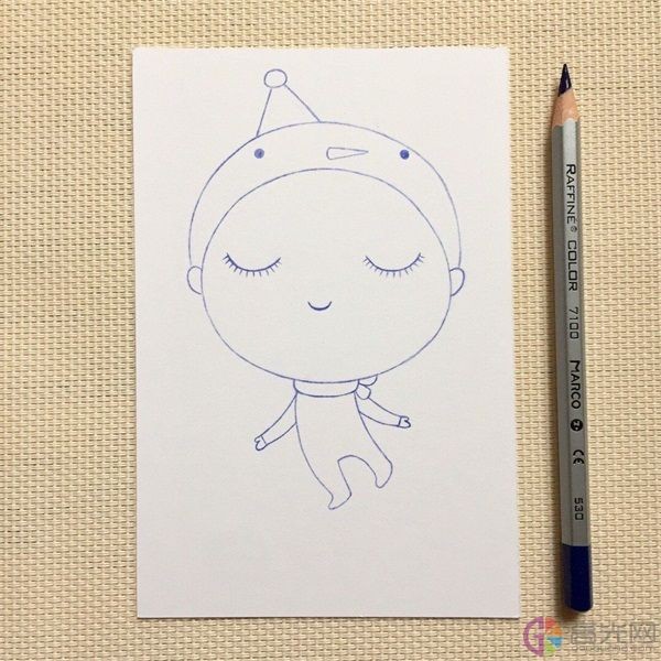 3、 给她画一个帽子。