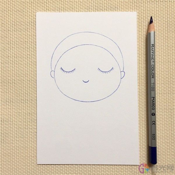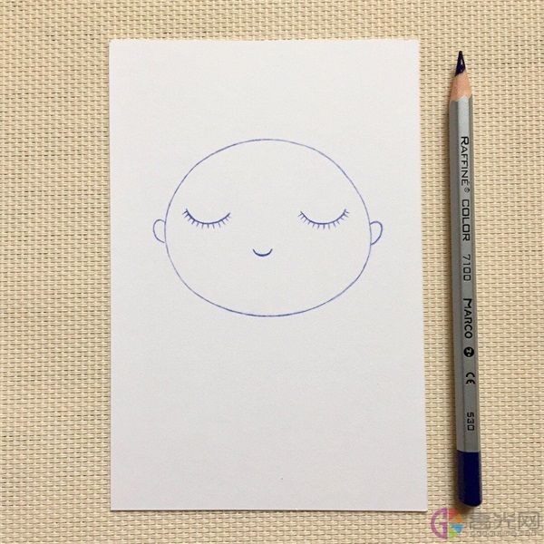 1、 首先我们画出小娃娃圆圆的头部。