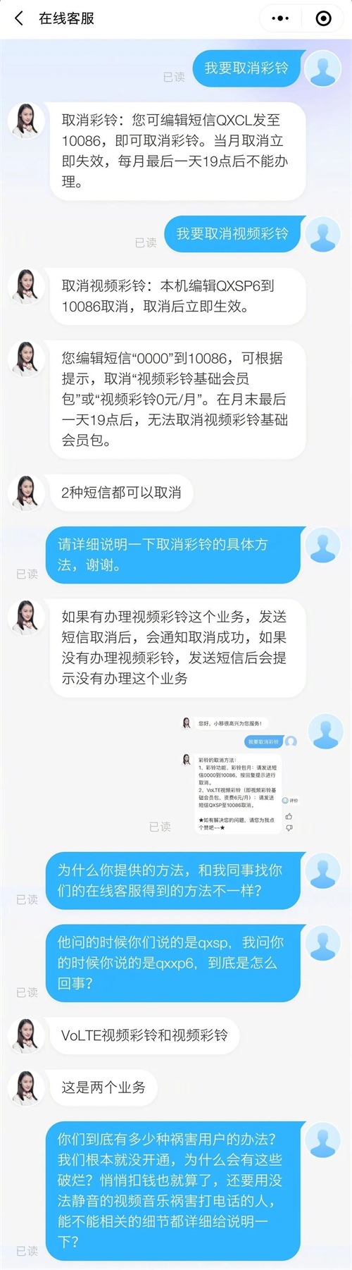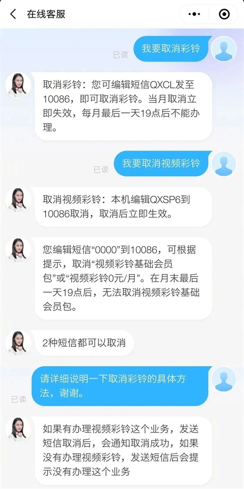 在不知情的情况下开通视频彩铃
