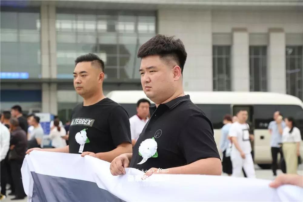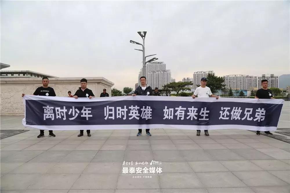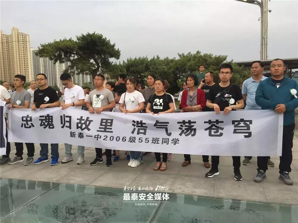在迎接房浩烈士的队伍中,有一支队伍是他的高中同学。“忠魂归故里 浩气荡苍穹”,新泰一中2006级55班同学代表,一起前来迎接老同学“回家”。