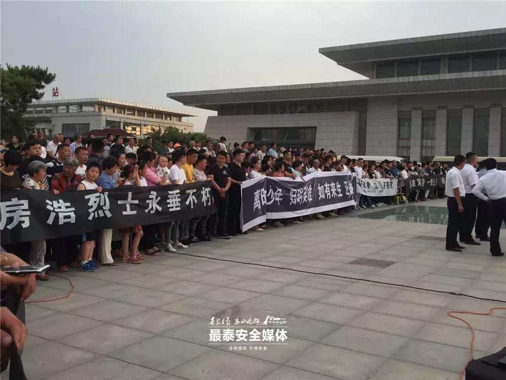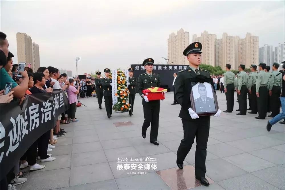 2019年5月24日下午,高铁泰安站广场异常肃穆。下午18时48分,载着房浩烈士骨灰的G1856次列车准点缓缓将驶入高铁泰安站。广场上,党政军群各界人士怀着无比沉重的心情,自发聚集到高铁泰安站广场,迎接英雄魂归故里。