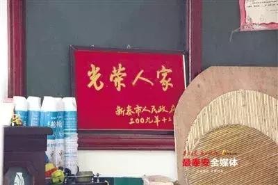 房浩家中摆放的“光荣人家”牌匾。