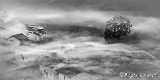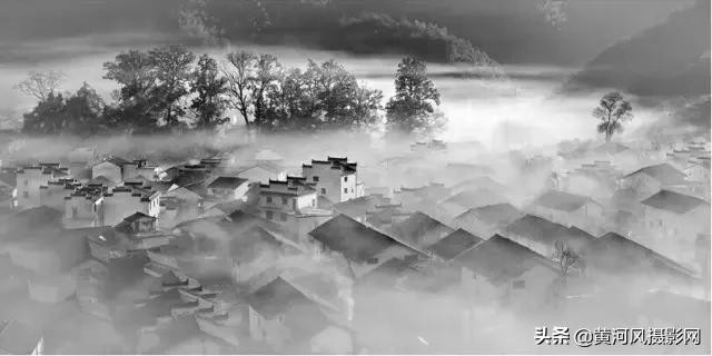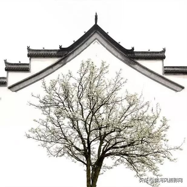 作品拍摄于皖南的一个山村,站在山坡上放眼望去,那一株株梨树漫山遍野,白茫茫的一片,像起伏的波浪。在徽派建筑群的印衬下,展现眼前是一幅美丽的画卷。
