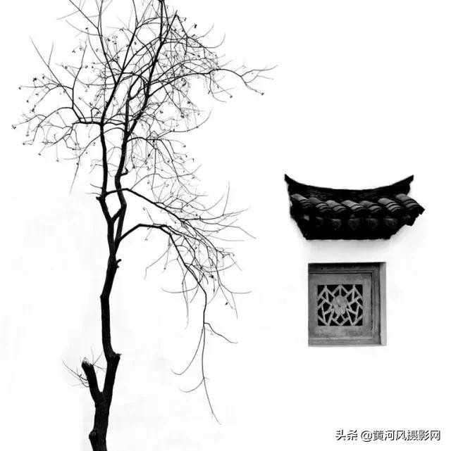 作者将生活中看似简单的古民居线条和纯净自然的黑白色,勾勒出一张栩栩如生的笑脸,生动而富有张力。