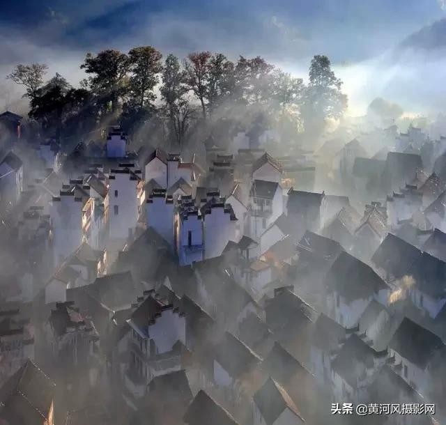 作品是作者2010年在江西婺源石城拍摄的,晨雾和炊烟在山村屋顶中缭绕,初升的太阳从东方照射进来,晨雾和炊烟掩盖了繁杂的背景,村庄仿佛在天宫一样。