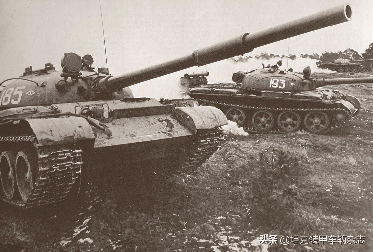 1962年7月,苏联最后一个中型坦克型号——T-62开始批量生产。说它是最后一个型号,是因为此后苏联生产的坦克都被算作主战坦克。作为T-55的后继者,T-62是一款因循守旧与开拓创新并行的中型坦克,它不但继承T-55炮塔与车体的基本构型设计,连火控系统、动力系统与悬挂系统方面也未作大的改动。可是,在如此朴实的情况下,T-62却又不失创新,T-62坦克配置一门划时代的115毫米口径滑膛炮,成为世界上第一种将滑膛炮实用化的坦克,也是第一种以尾翼稳定脱壳穿甲弹作为主要反坦克弹种的坦克。T-62坦克投入批量生产的过程十分艰难,而其命运也弥漫着硝烟,实际上,不是所有二战后问世的苏联坦克像T-62这样久经战火考验。