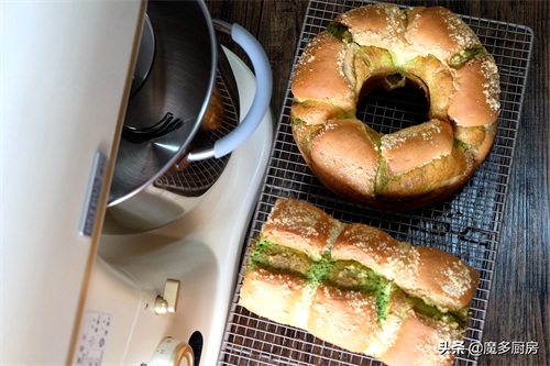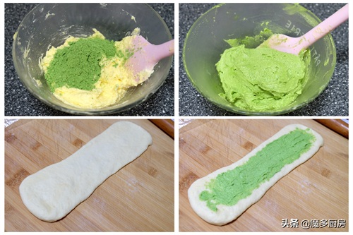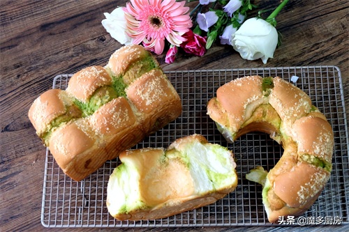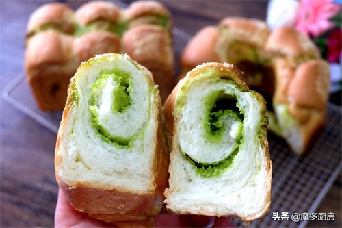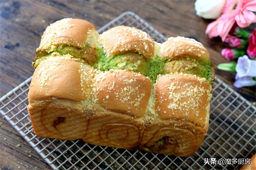 这次做的面包叫做【斑斓奶酥吐司面包】,奶酥里混合了斑斓粉,是一种清爽的绿色,显得面包更加好看,口味也更丰富。