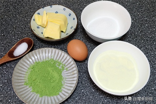 【斑斓奶酥原料】:斑斓粉8g、奶粉60g、糖粉30g、动物黄油80g、全蛋液50g、盐1g;