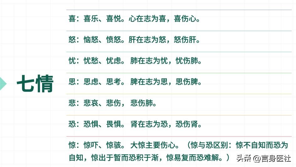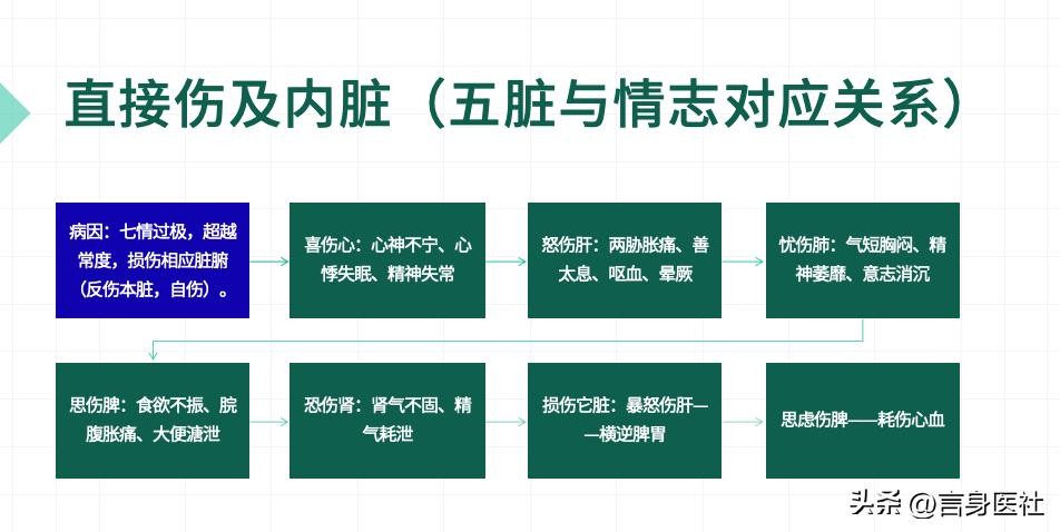谢老师继续说道:“情志的过度或不当表达,会损伤相应的脏腑。七情与五脏生理密切相关,是脏腑精气功能活动的外在表现。七情太过又可损伤相应之脏:心在志为喜,过喜则伤心;肝在志为怒,过怒则伤肝;脾在志为思,过度思虑则伤脾;肺在志为悲为忧,过度悲忧则伤肺;肾在志为恐,过恐则伤肾。”