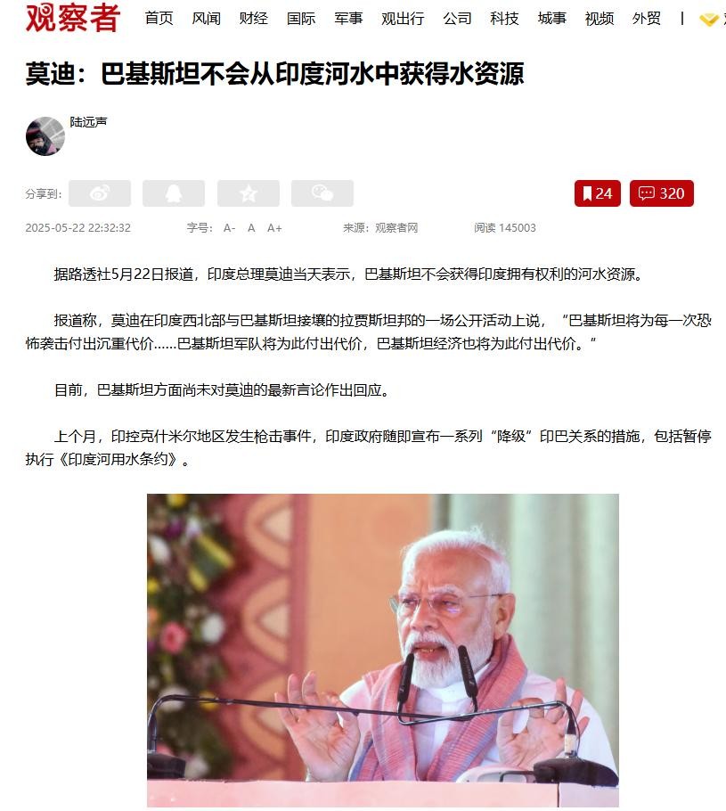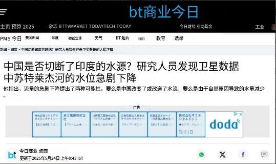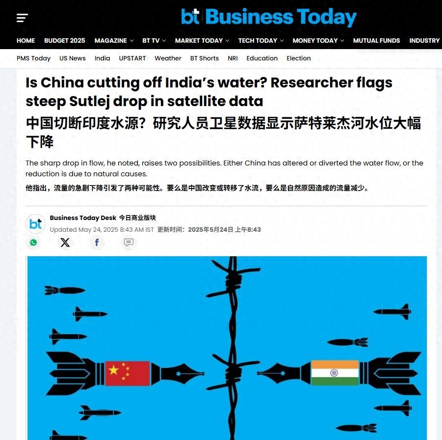 可就在印度对巴基斯坦"断水"断得正爽的时候,转眼就开始担心起自己被断水了,印度媒体"今日商业网"突然推出重磅文章,标题就叫《中国是否切断了印度的水资源?》。