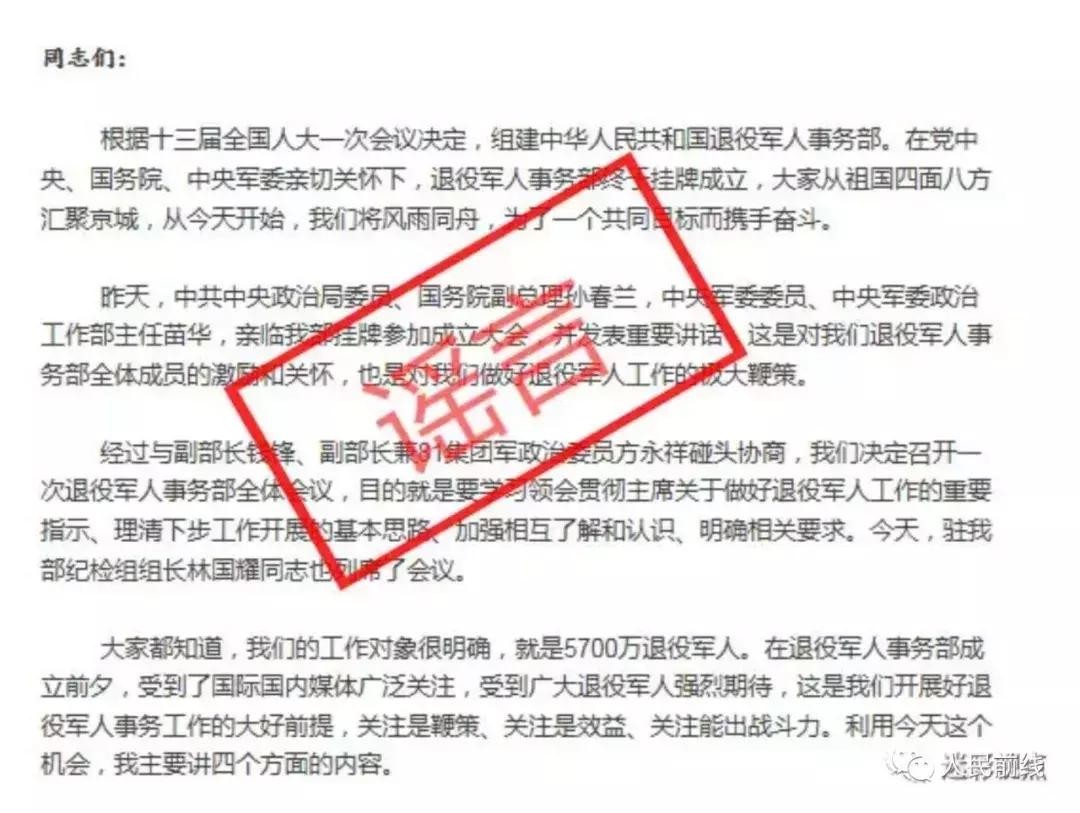 谣言五:退役军人事务部孙部长给全国5700万退役军人的一封信