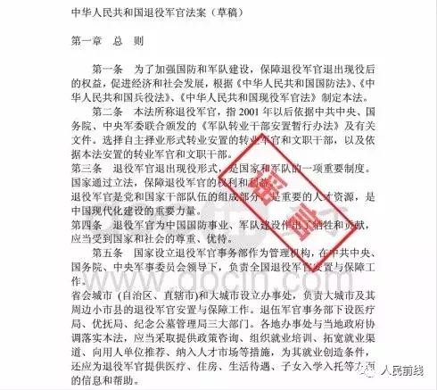 今年3月,退役军人事务部刚刚确定设立,一份《中华人民共和国退役军官法案(草稿)》就在朋友圈开始慢慢扩散起来。