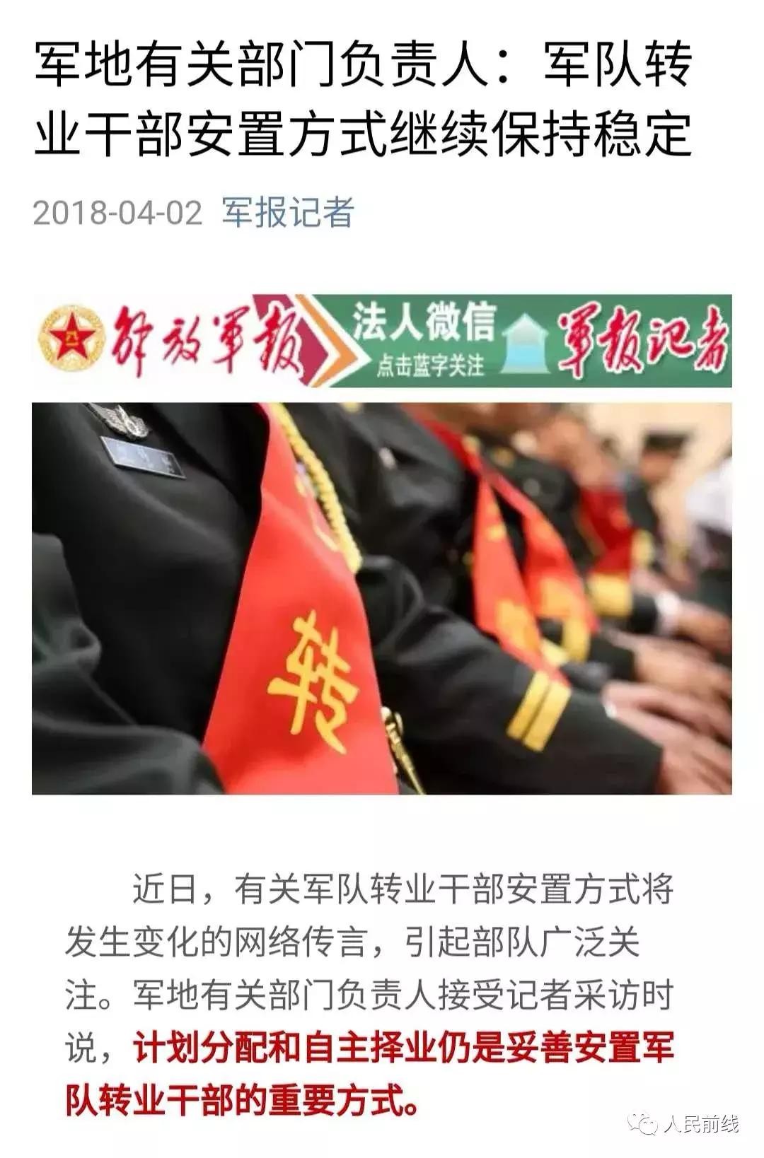 4月2日,部队官方媒体“军报记者”发文称,军地有关部门负责人在接受采访时,明确回应——军队转业干部安置方式继续保持稳定,网络传言均无根据。