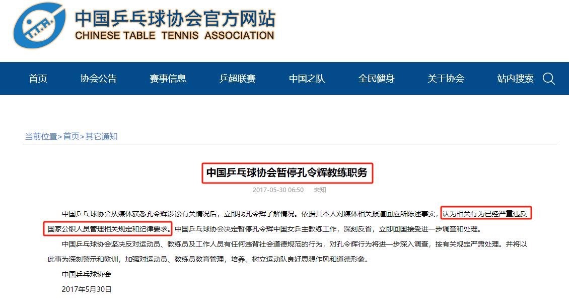 中国乒乓球协会官网|体育总局将严肃查处孔令辉的问题
