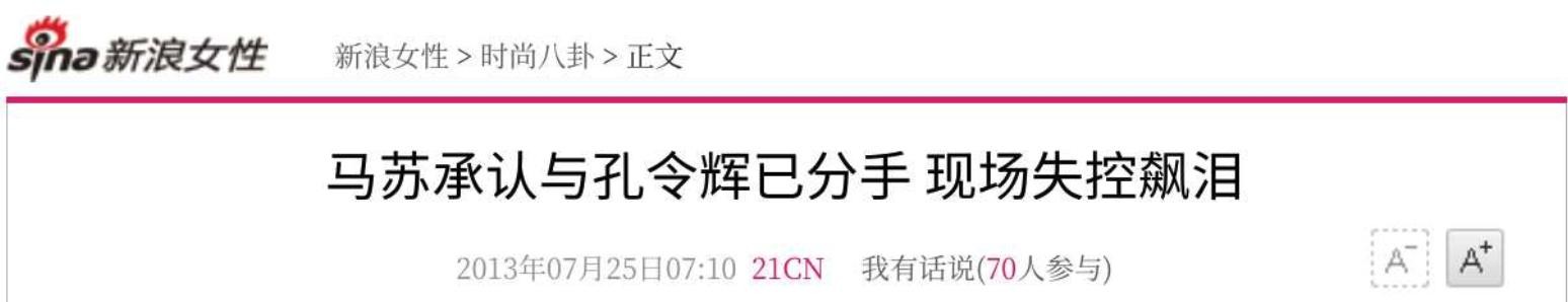 新浪女性|马苏承认与孔令辉已分手 现场失控飙泪