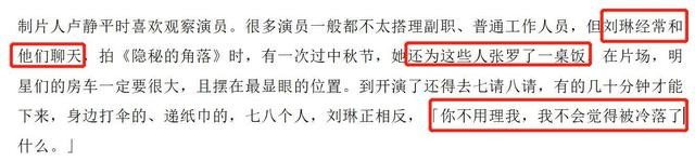 而在行业内部,刘琳的风评也出奇的好,不像其他在剧组不喜欢搭理人的明星,刘琳经常在剧组拉着各种工作人员搭话,过节时,她还特意为工作人员准备了一大桌子菜,从来都是最平易近人的那一个。