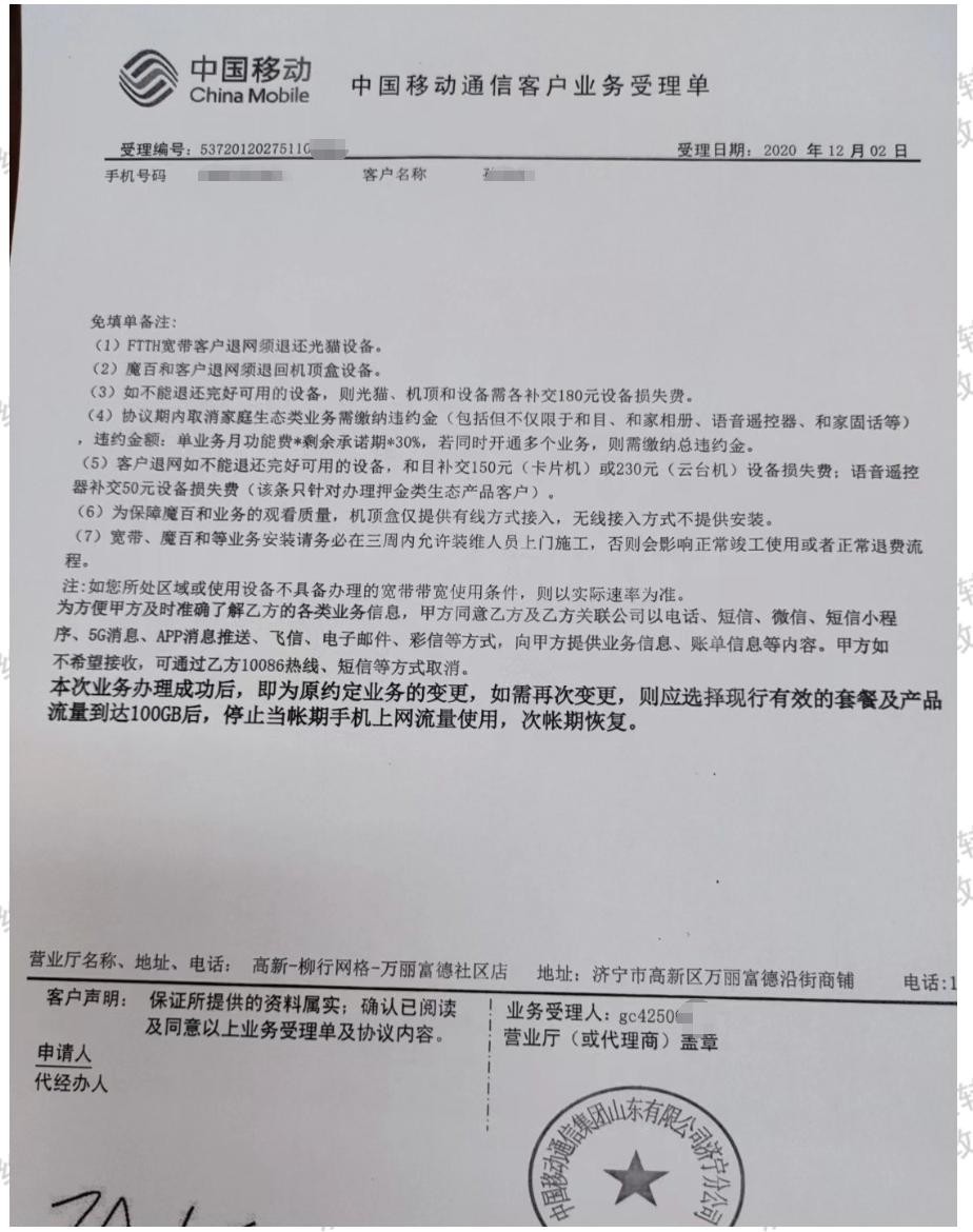 诈骗客户?网友投诉济宁移动营业厅霸王条款、套路满满