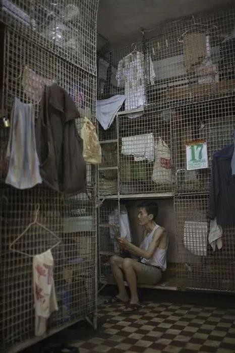 劏房竟然还不是最小的,香港有比劏房更惨的住处,那就是笼屋。就是拿铁丝网围起来的空间,一个房间可能有十几个笼屋,大小刚好能放下一张单人床,他们共享着厨房,厕所,衣服也是挂在铁网上