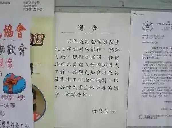 图为围村门口村民当权贴出的警告通知,有没有很霸气