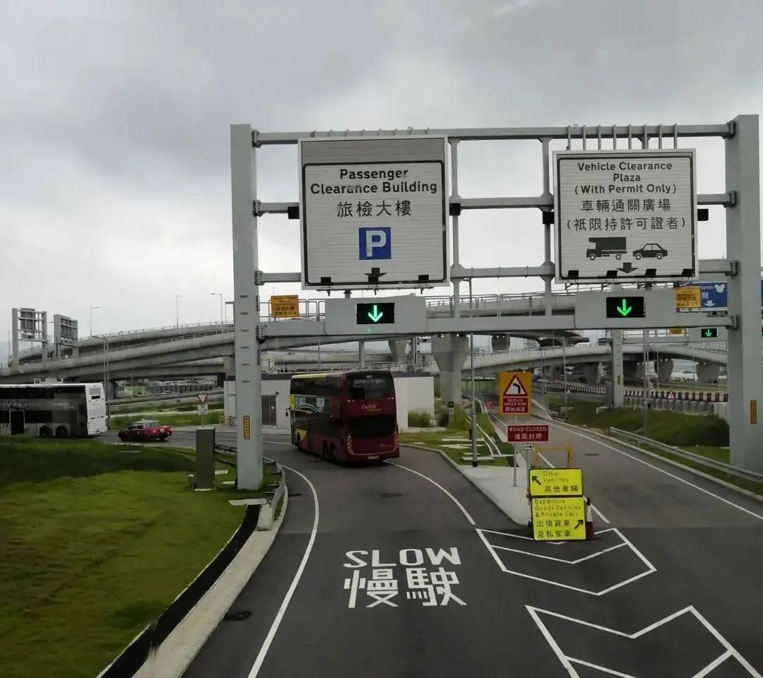 从这条路,可以通往港珠澳大桥,有很多大巴车从这走