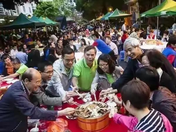 村里的宴席,万人盆菜宴,一座就一道盆菜,里面有十几种菜肴, 层层叠放