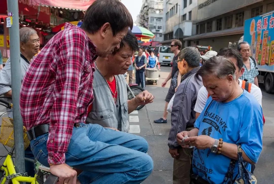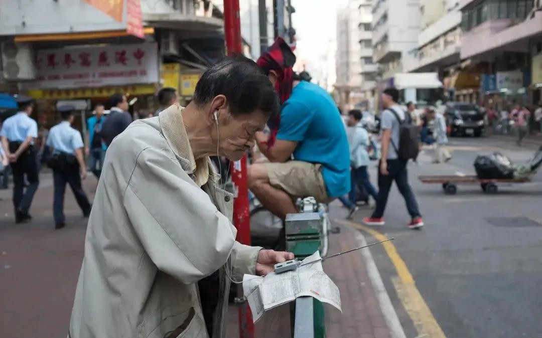 街头,听着收音机,看着马报的老人,赌马,是香港人的日常生活