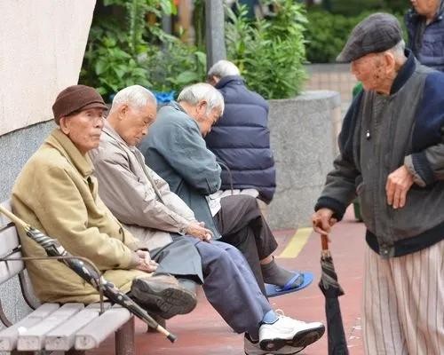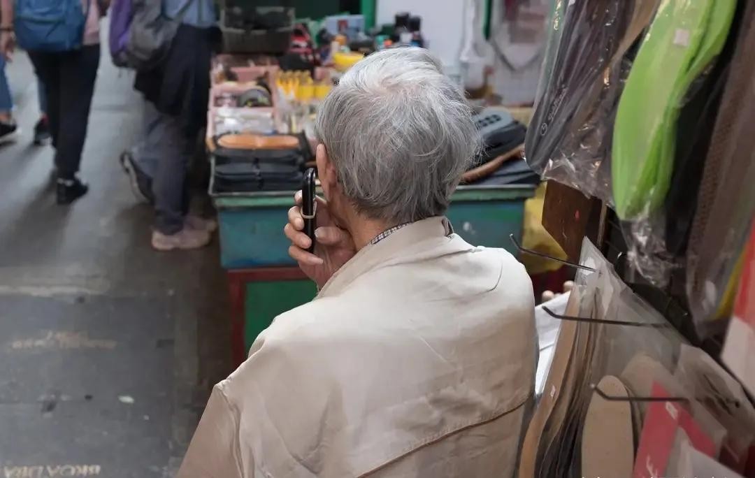 几个老人,坐在地上,坐在栏杆上看着街头人来人往的人群,不知他们在聊些什么