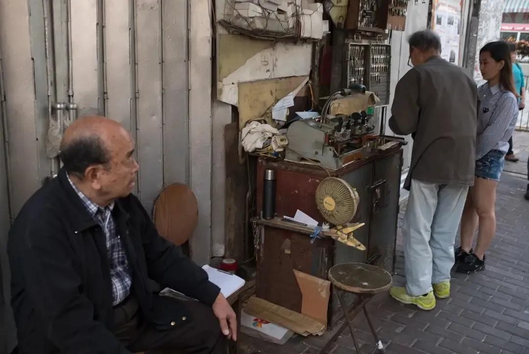 小巷里,一个配钥匙的小摊位,老板是位70岁的老人,没有年轻人愿意接手这个行当
