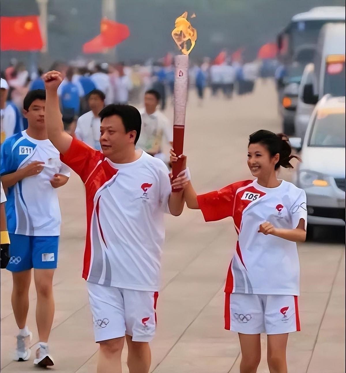 她和当时的丈夫蒋虎一起,成为了奥运会的火炬手!