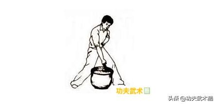 要求:练习时以意领气,目凝视拳,两膀用力,气由丹田上至两肩,再至两臂,功成后臂可载千斤。
