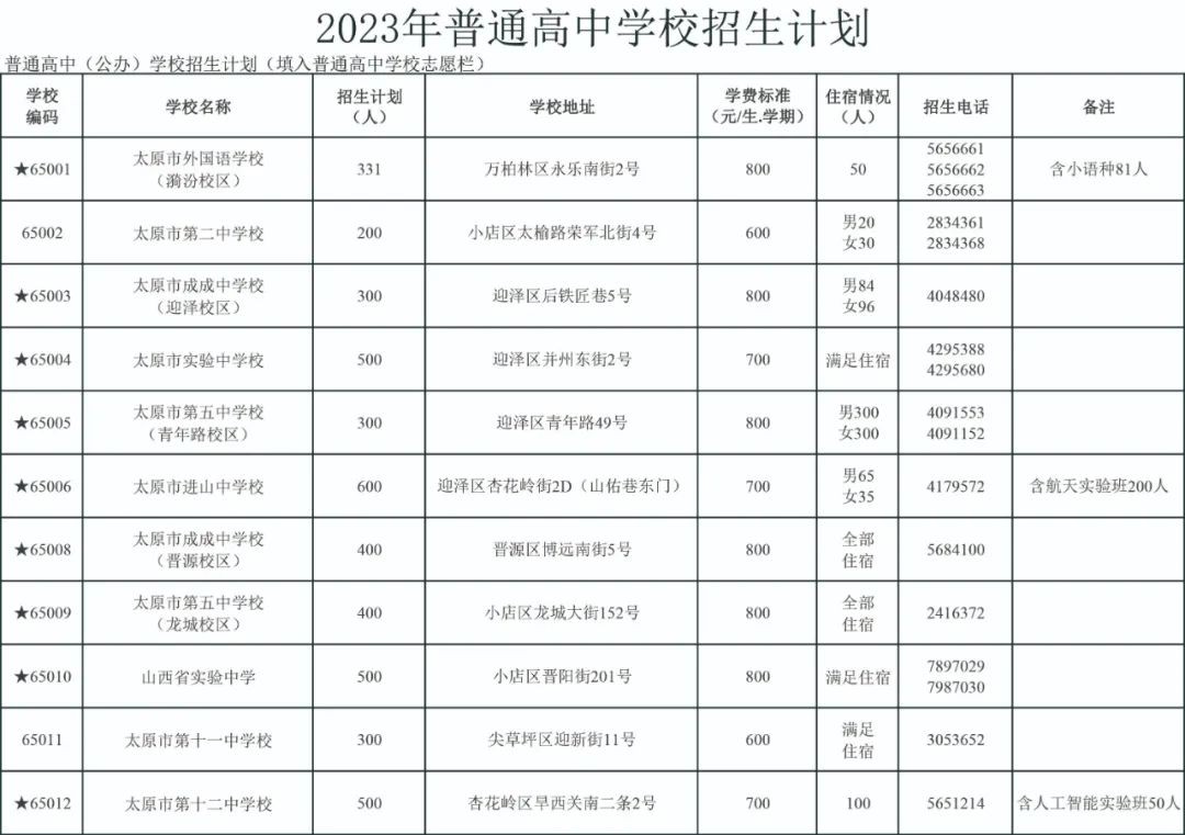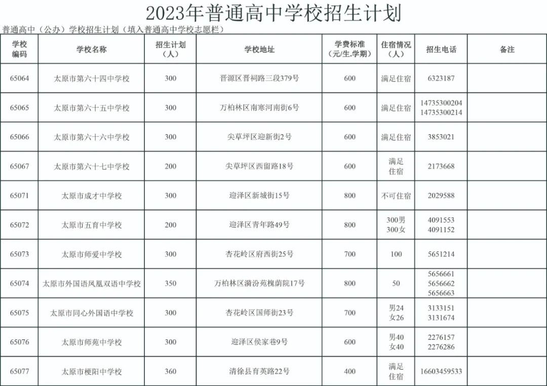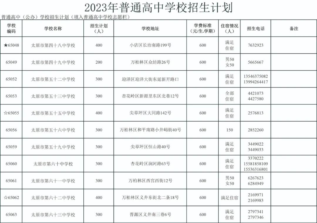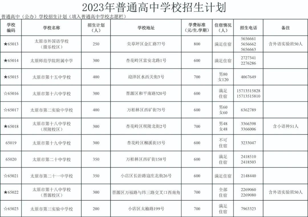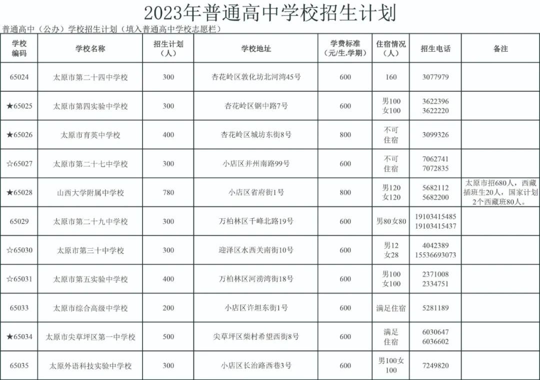 2023太原公民办普通高中招生信息