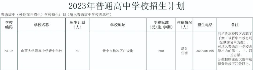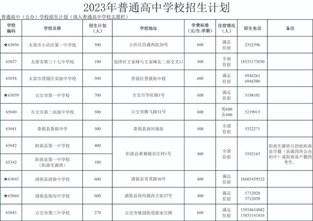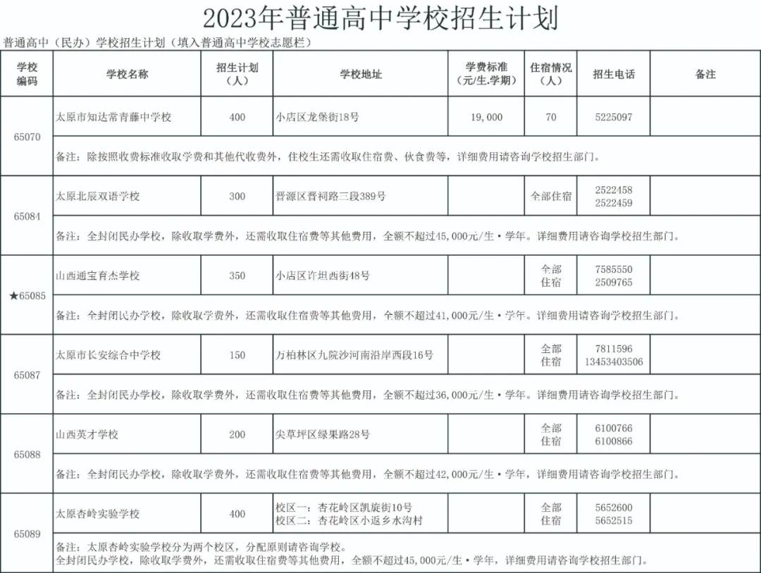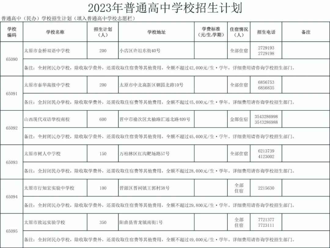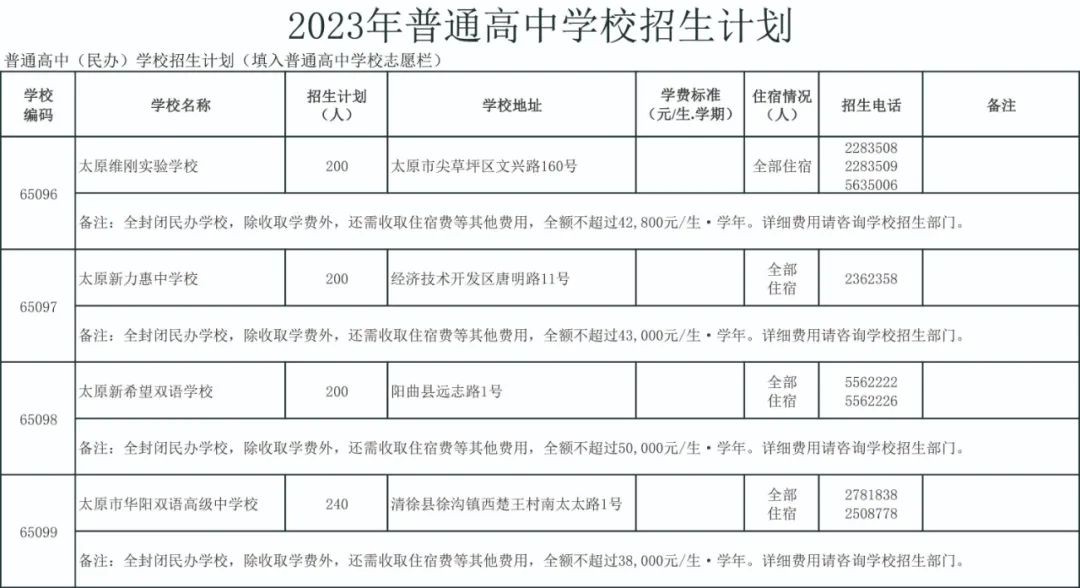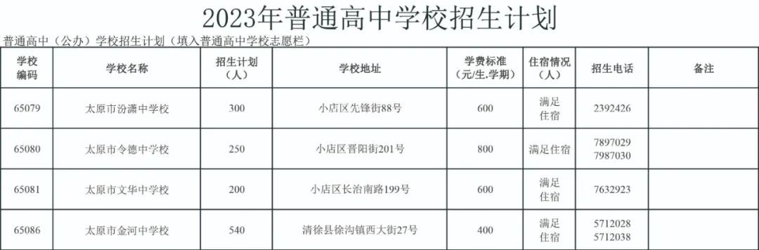 2023太原公民办普通高中招生信息