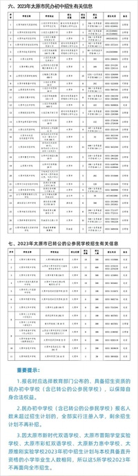 太原市2023年民办初中招生信息