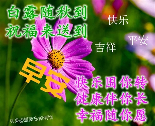 7:白露到了,谦虚的你可以“露”一“露”你的业绩,然后事业步步高升;“露”一“露”你的帅气或美丽,吸引一个好伴侣;“露”一“露”你的爱,让家庭更加幸福如意!你好,早安!