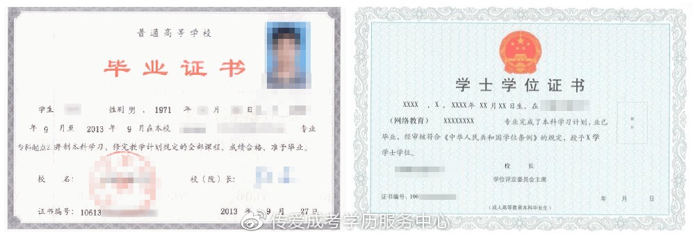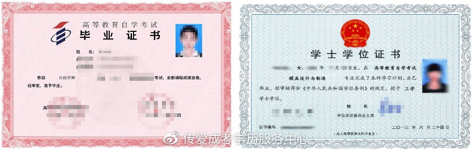 一、成人高考毕业证书与、学位证书