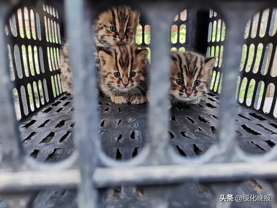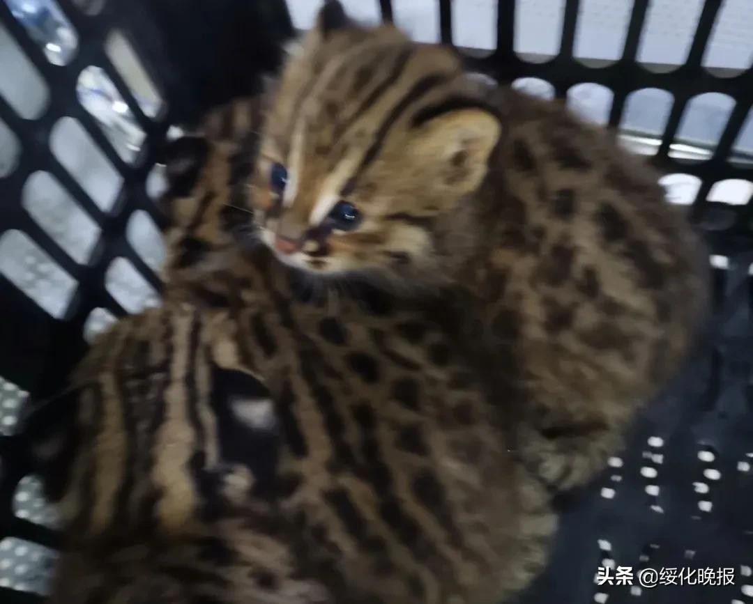 6月3日16时,绥化市公安局宝山派出所接到辖区内群众报警称:在永顺村道边发现一个笼子,里面有三只小猫崽,看着像野生的豹猫。