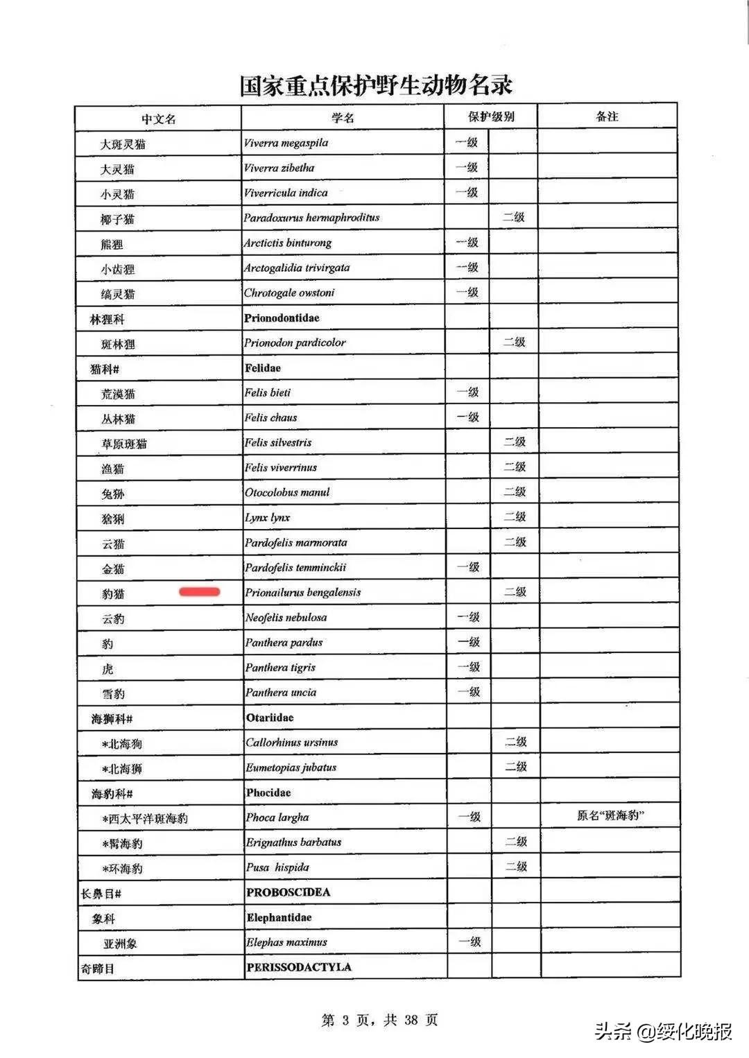 在我国,豹猫被列为易危品种,属于国家二级保护动物。