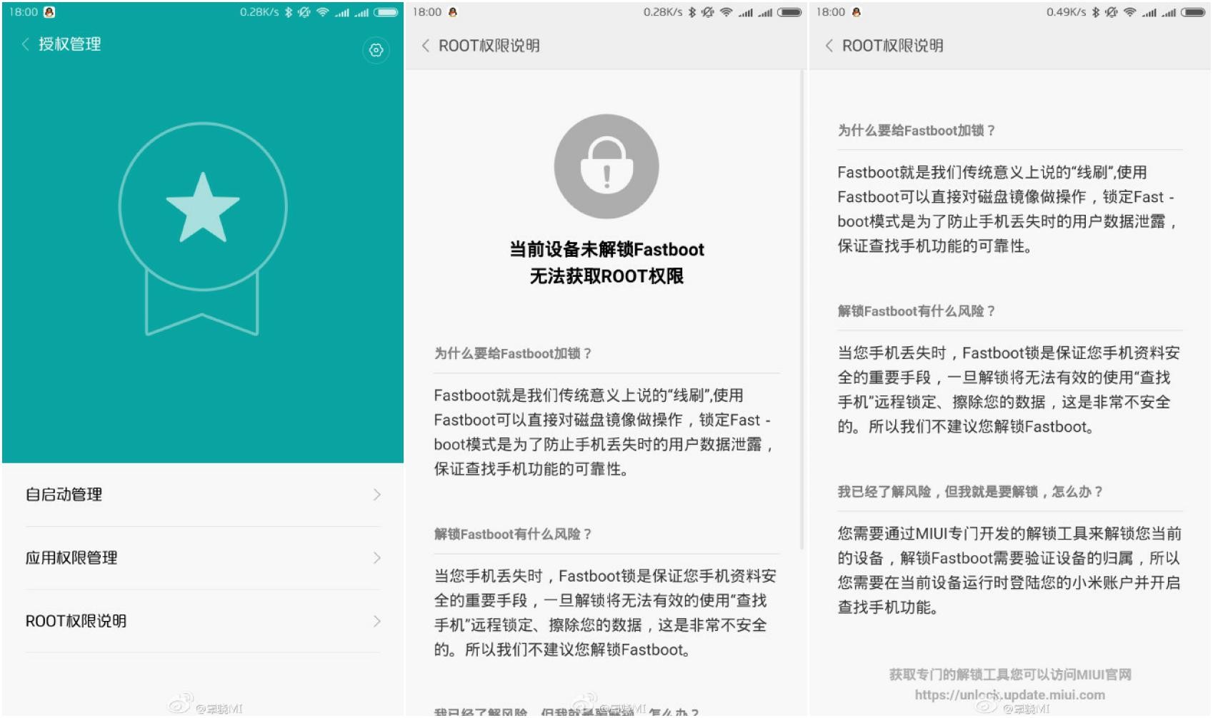 近期,有小米手机用户在微博表示,最近更新完MIUI系统之后,发现自己的小米手机开发版的root权限管理突然变得与众不同了,只有在解锁Fastboot后才可以继续获取root权限,这便是我们通常所说的“锁BL”。