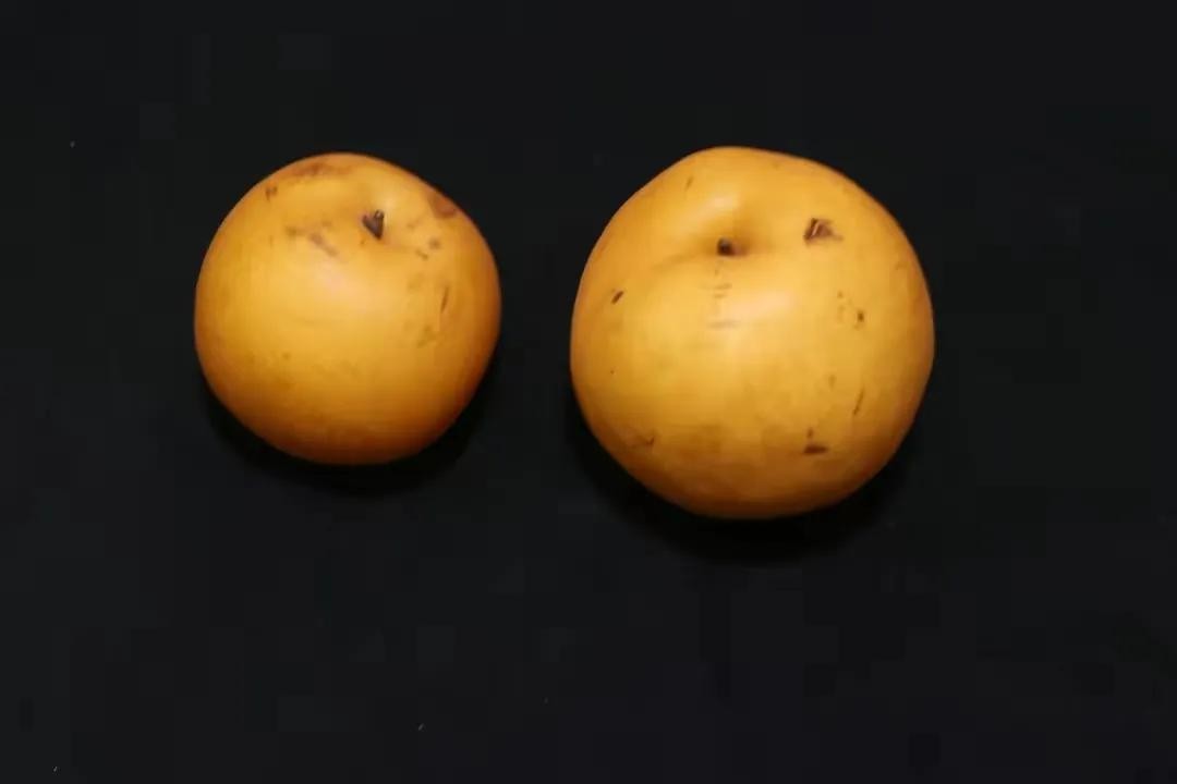 由于秋月梨的“爷爷 ”是丰水梨,秋月梨外观 跟丰水梨长得也极为相似。