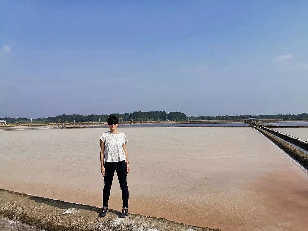 越靠近海边的道路两侧,看到布局如网格的池塘,