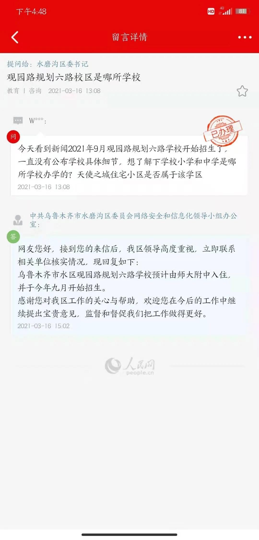 官宣!乌鲁木齐观园路片区又添一所优质教育资源!乌鲁木齐有关部门官方回复网民:观园路片区在建规划六路学校,为新疆师范大学附属中学,今年九月投用(下图),也就是,这个学校不是新疆新疆师范大学附属中学的分校就是新校区,大家都知道,新疆师范大学附属中学高中比较厉害,为乌鲁木齐综合实力第六名,跟23中齐名,仅次于乌市第70中学,虽然初中偏中上,但小学比较不错,因此,如果在这里办师范大学附属中学的分校或者新校区,无疑会给观园路片区教育资源注入新的活力。