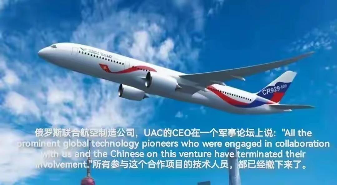 CR929最早原定于2023年首飞,2025年投入商业运营。由于种种原因,2022年7月俄方最终撤下了项目所有参与人员,退出了该项目,2023年C929开始单独出现。