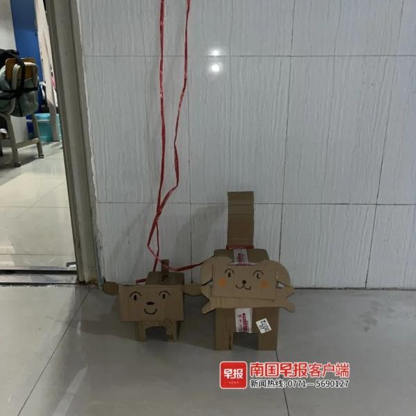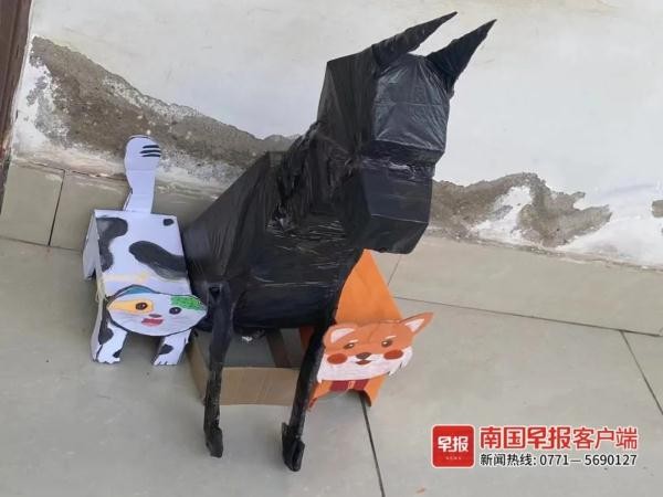 广西某高校出现各式各样的纸壳狗。本文图片均由受访者提供